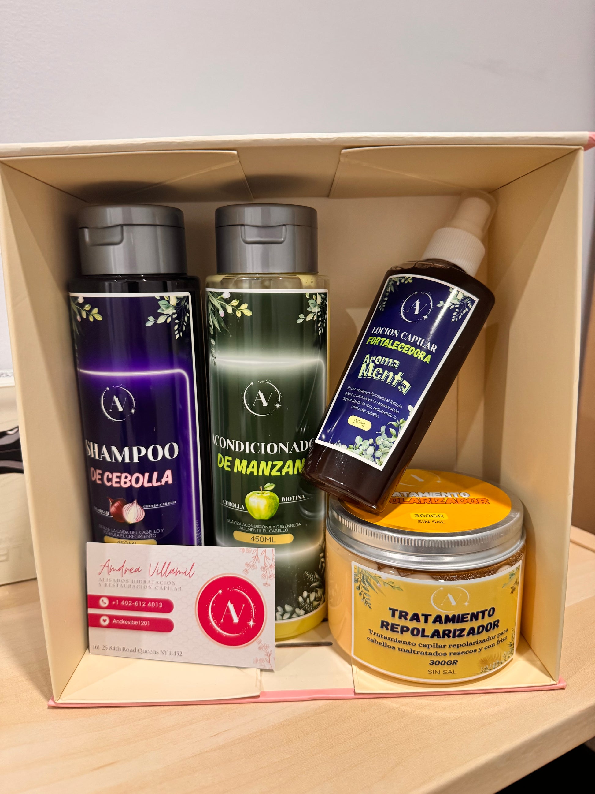 🌟 RUTINA CAPILAR COMPLETA by AV ANDREA VILLAMIL. 💆‍♀️ Shampoo + Acondicionador + Tratamiento + Loción